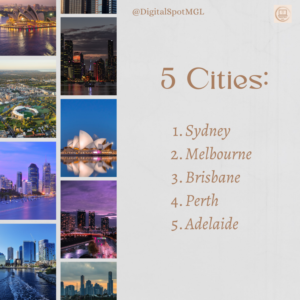 - 5 cities in Australia.